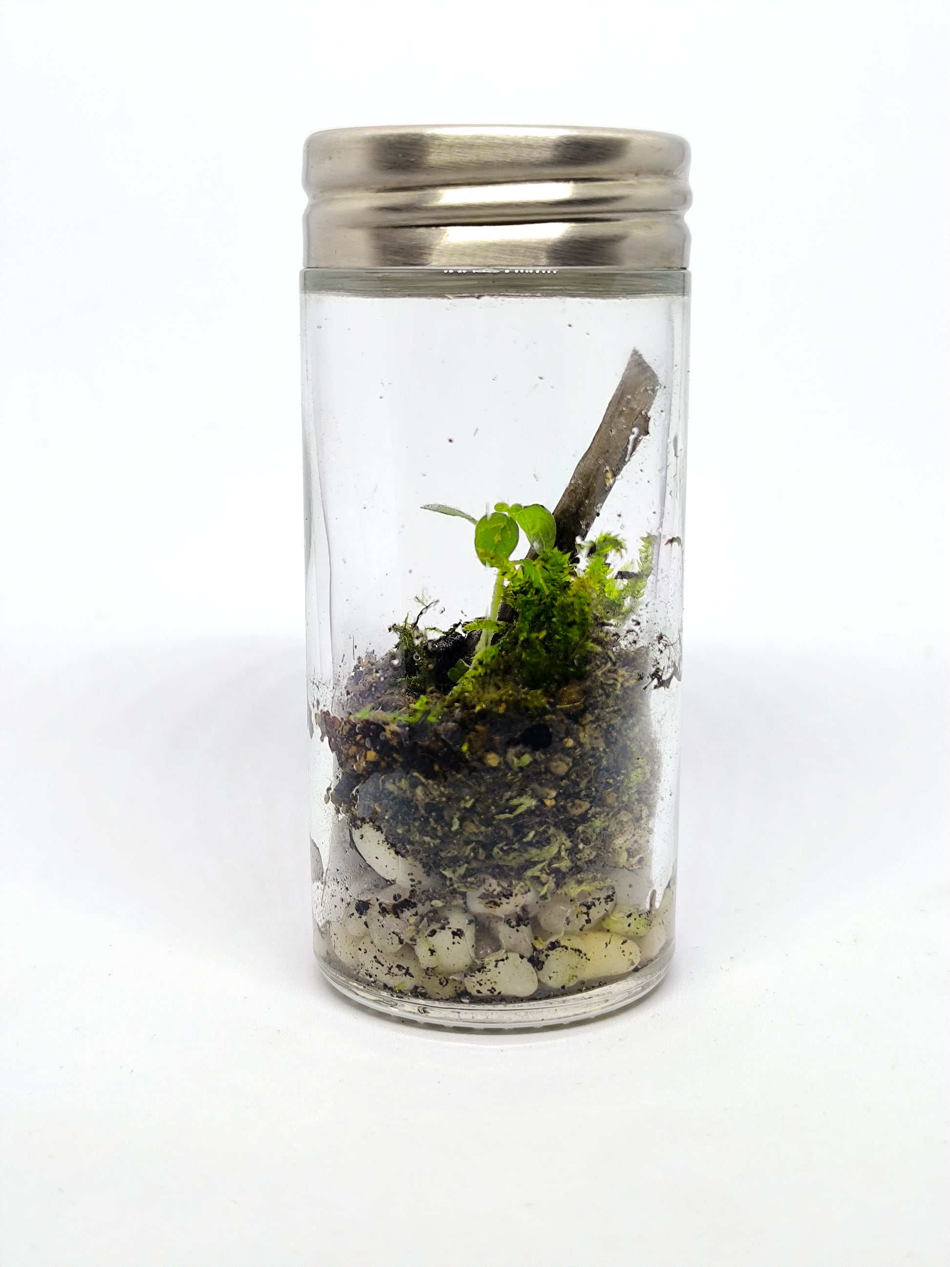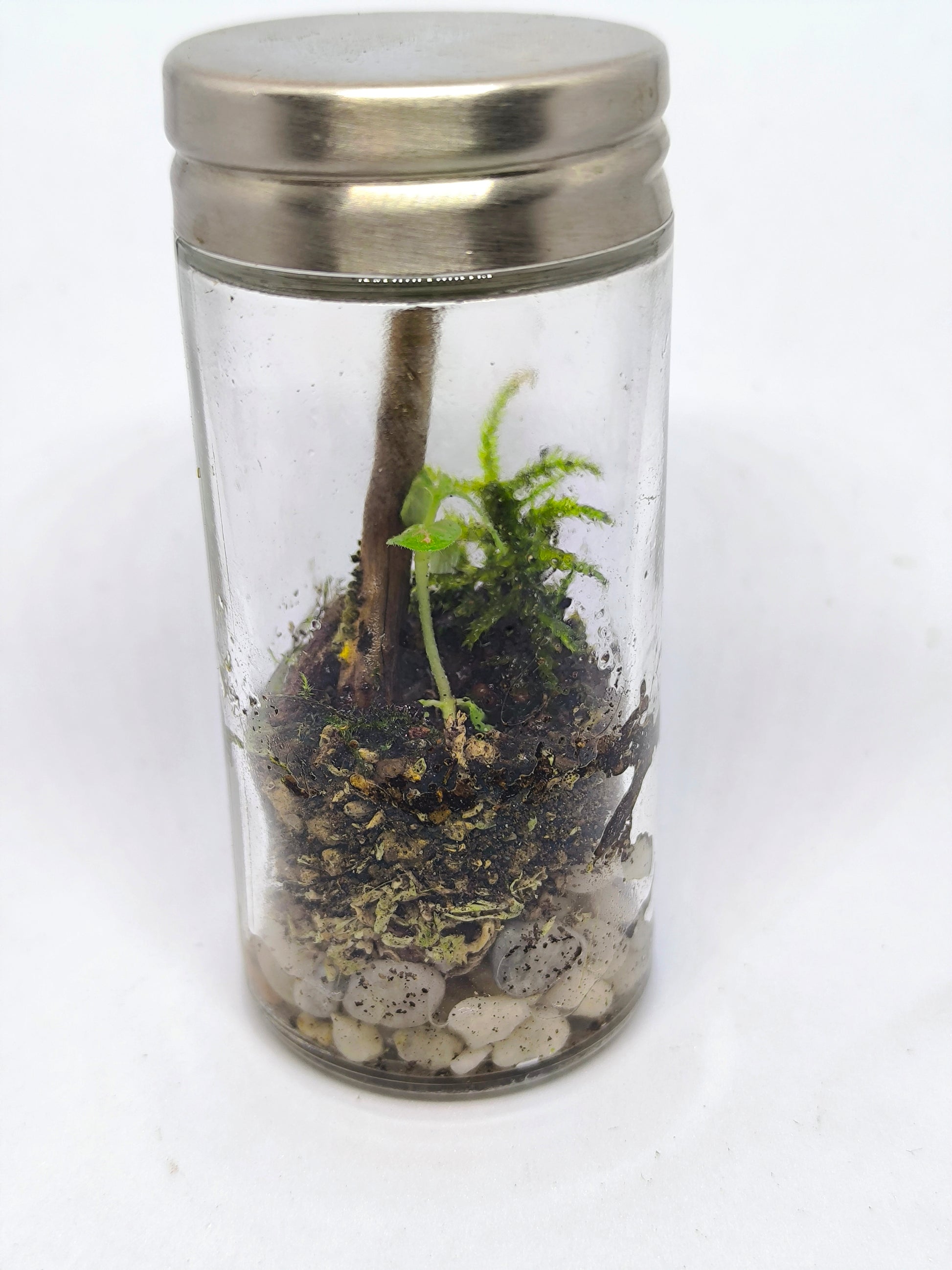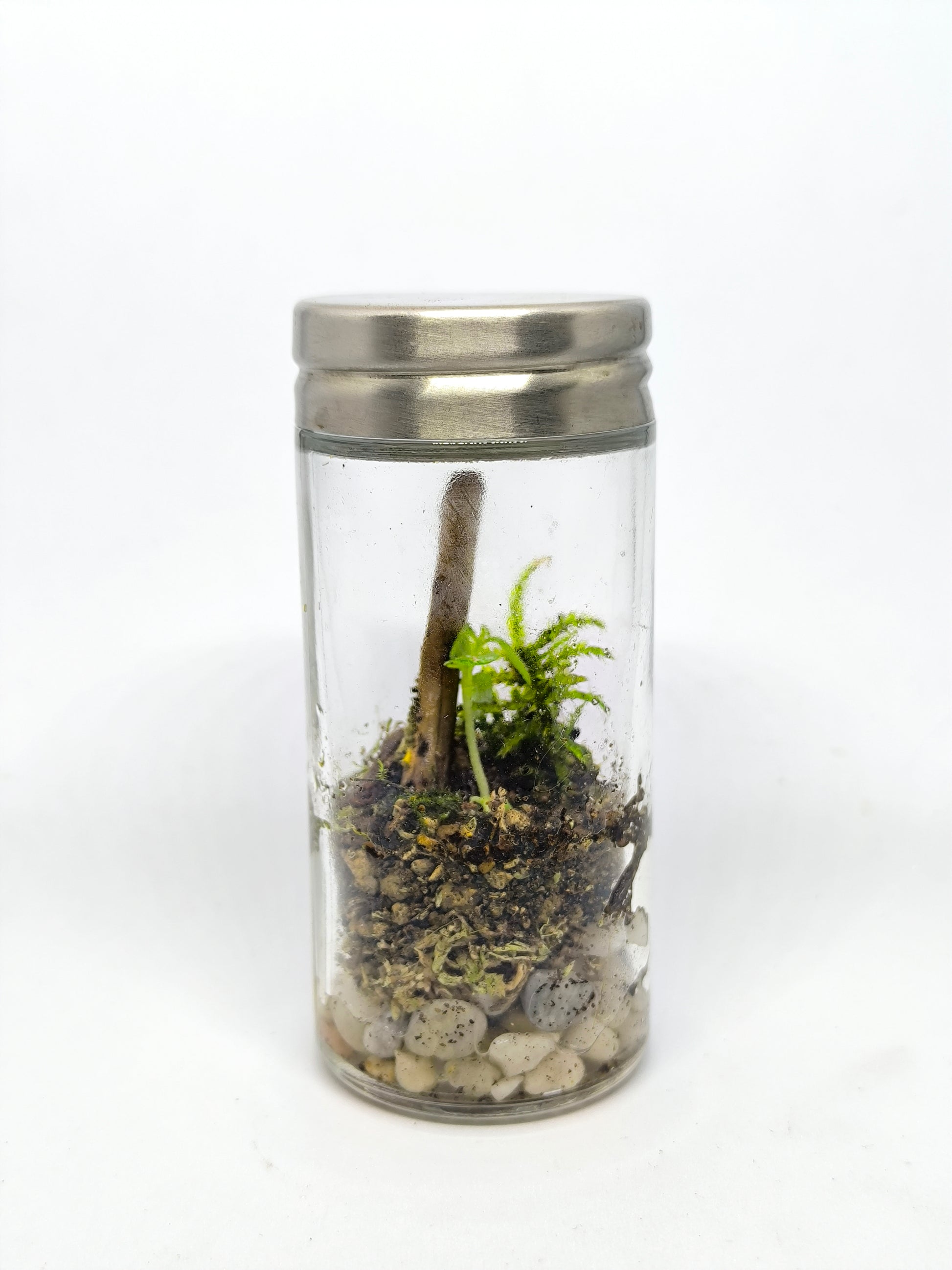 Mini terrarium réalisé dans un pot premièrement destiné aux épices.